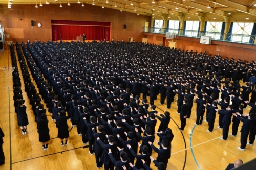 10日(火)、全校生徒が体育館に集合し平成30年度1学期始業式が行われました。校長先生の「おはようございます」の挨拶に、全校生からの大きな声の「おはようございます」から、始業式は始まりました。