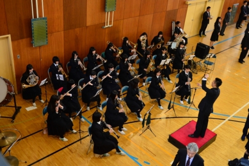 音楽部による歓迎演奏の「勇気100%」で、体育館は温かい雰囲気につつまれました。こうして、平成30年度1学期始業式・対面式は終了しました。