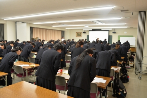 17日(火)放課後、平成30年度就職講座の1回目が開講されました。この講座の目的は、就職に対する意識を高め、学力や面接方法、社会に必要な基本マナー(服装・言葉遣い)を身に着けることです。また、企業訪問担当者とのコミュニケーションを図ることで、よりスムーズな進路指導ができるようにすることです。第1回目となる今回の講座では面接カードの記入や、担当教諭より今後の就職講座や進路指導についての話がありました。講座に出席した70名ほどの生徒は、就職に向けて真剣に取り組んでいました。