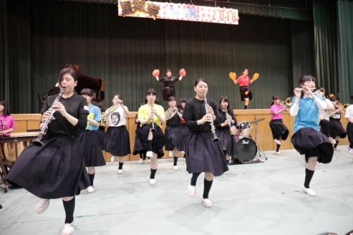 講堂のステージでは、客席が満席に近い状況の中、女子ダンス部や音楽部の素晴らしいパフォーマンスに魅了され、よしもとお笑いライブの漫才により爆笑の渦が沸き起こりました。