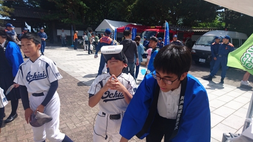 「須磨区のバーチャル観光マップ」は、須磨区の主要な観光地を3Dレンズで撮影した動画を、専用のバーチャルリアリティゴーグルで閲覧します。体験した子供たちは、3D動画に登場するバラの花に手を伸ばそうとしたり、ゴーグルを付けたまま上を見上げるなど、それぞれの楽しみ方を見つけていました。