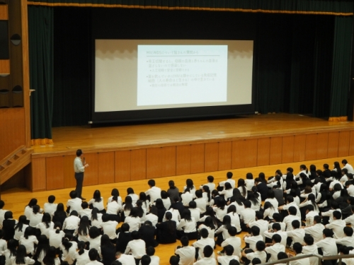 6月21日(木)、6時間目に3年生を対象として、神戸市環境保健研究所より谷畑先生にお越しいただき、性教育講演会を行いました。男と女の考え方の違いや性感染症、特にエイズや若い人に多い性器クラミジアについて詳しく、わかりやすく教えていただき、大変勉強になったとともに、性に対する認識を改めた様子でした。