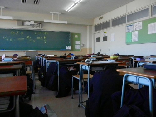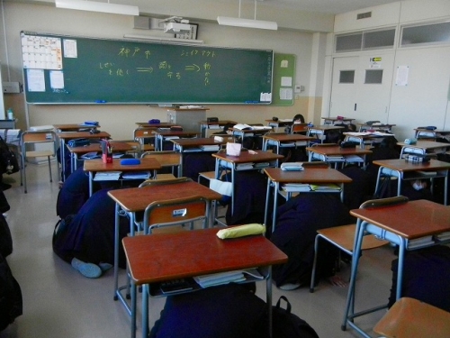 午前9時7分緊急地震速報=校内放送により各教室で、シェイクアウト訓練(「3つの安全行動(=姿勢を低く・頭を守って・動かない」、どこでもだれでも気軽に参加できる、いっせい防災訓練)の後、体育館へ避難しました。体育館に移動完了6分07秒・全学年点呼完了9分08秒で訓練は終了しました。(前回6分55秒・点呼完了9分25秒)
