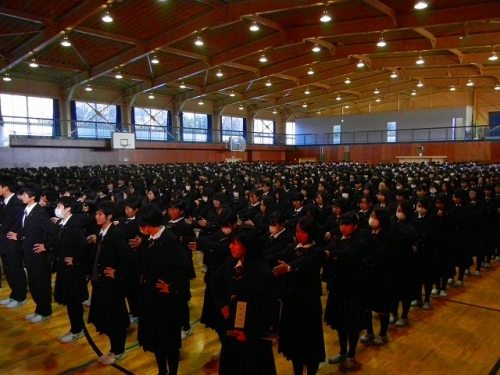 3学期というのは、最も短い学期です。3年生は大学などの上位学校、実社会という大人社会において堂々と行動できるように、様々な困難を乗り越えていく力と礼儀正しさなどの品性を身につけて下さい。1・2年生は、4月に入学して来る新入生の模範になれるよう人間性を磨いて下さい。