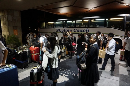 英会話の事前指導で練習してきた入国審査も無事に通過し、本日宿泊するDouble tree by Hiltonに向かいました。