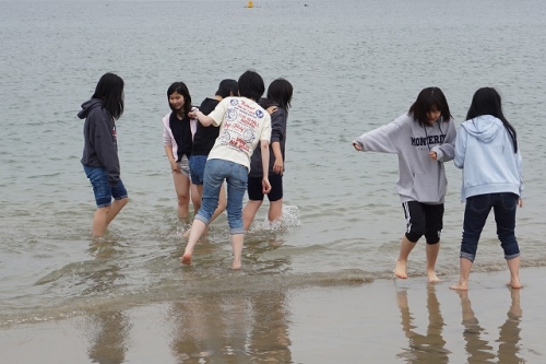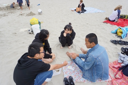 今日は午前中は語学研修を受け、午後はビーチパーティをしました。ビーチパーティーではスナックを食べたり、サッカーをしたり、バレーボールをしたり、水を掛け合ったり、楽しく過ごすことができました。ファミリーの子供たちも参加して、交流を深めました。