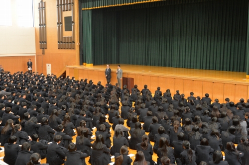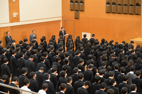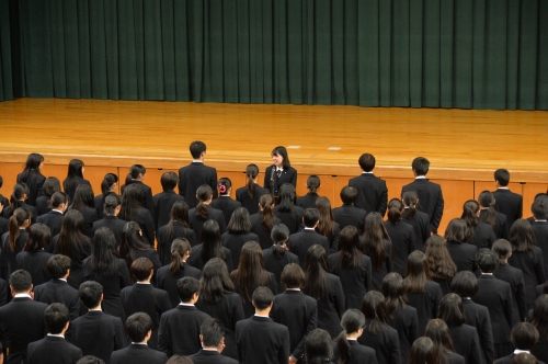 最後に代表生徒が「この修学旅行は私たちにとって、見聞を広め友情を深める絶好の機会です。今回お世話になる方々だけでなく、日頃お世話になっている方への感謝気持ちを忘れず、高校生としての自覚を持ちルールを守り、実りのある修学旅行にしましょう」と、決意をのべ「結団式」を終えました。