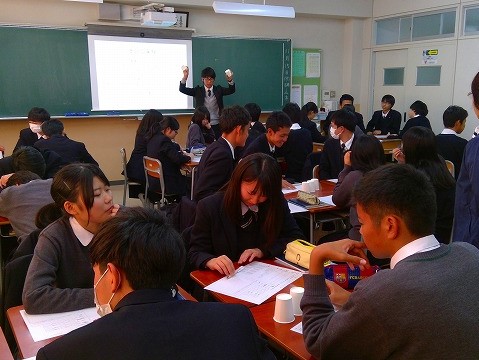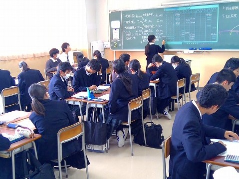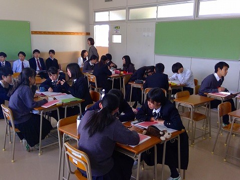 今週12日から16日までの5日間は、授業を行う教員の知識・技能の習得・向上を目的とした「授業研修強化週間」となっています。後半でも理科・国語・数学・商業・英語・家庭科の授業研修が行われ、教員同士が互いに授業を見せ合い検討し合いました。