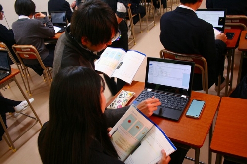 クエストカップというPBL(課題解決型学習)の授業やChromebookでプログラミングソフト「Monaca」を用いたプログラミングの授業や、生徒が説明するような授業、実験・グループワーク・発表といったAL(アクティブラーニング)型授業をしたりとこれからの時代に対応すべく様々な新しい授業にも取り組んでおります。