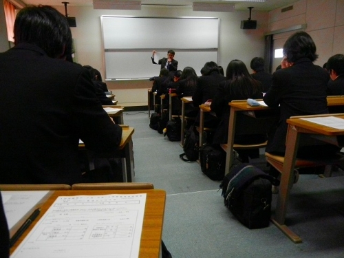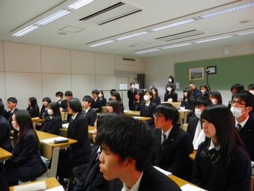 2月14日(火)の放課後、国公立大・短大への進学者56名がレクチャー室に集合し、大学合格後の生活について指導が行われました。その一部を紹介しますので、後輩のみなさんも参考にしてください。