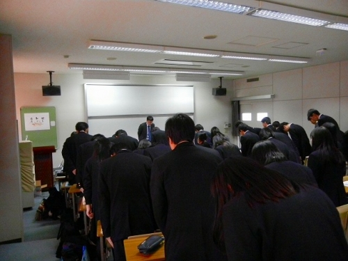 最後にこのような言葉で終えられました。「君たち56名は、商業高校からの国公立・短大合格を実践し見事に結果をだしました。つらい時もあったでしょうが、自分の努力が周囲の喜びや誉れとなり、本校の誇りとなったのです。この体験を自分たちだけに終わらせるのでなく、次は君たちが後輩を支える立場になってください。君たちの書いた報告書は、後輩たちのやる気の追い風となります。それが本校の伝統となっていることは、去年の受験勉強中に君たち自身が体験したことでしょう。大学進学後も商業科で身につけた特別な能力を活かし中心人物として活躍してください。」
