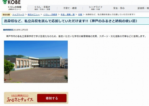 平成30年12月3日(月)より神戸市のふるさと納税を利用して本校へ寄付できるようになりました。