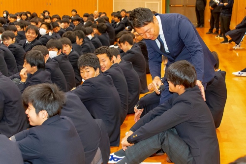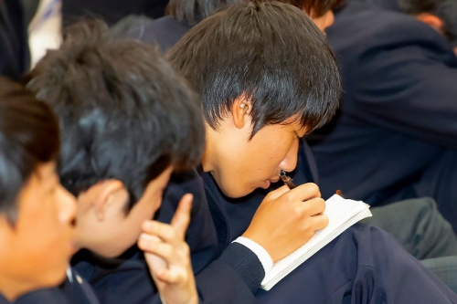 授業形式での講演で、生徒たちに質問したり、1500円のサッカーボールを5000円で売るにはどうすればよいかというワークショップをいれたりと、生徒達は恥ずかしながらも色々考えながら講演を聴いた様子でした。