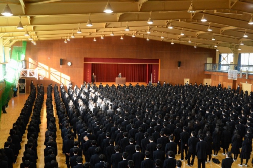 12月21日(金)、全生徒が体育館に集合し校歌斉唱の後、学校長から「冬休みを迎えるにあたって」の講話がありました。