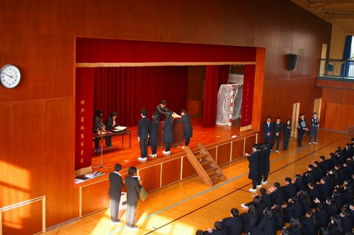 その後、表彰伝達と生徒指導部長から話がありました。表彰内容は以下の通りです。
