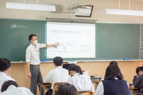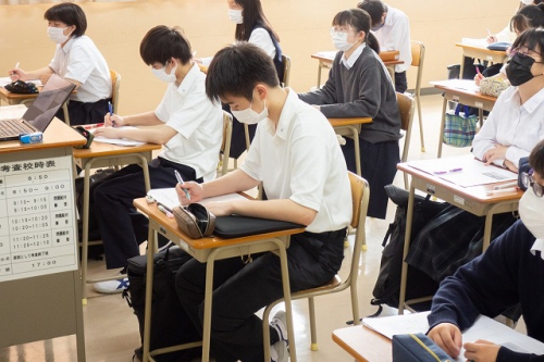 本日の特進Sコース土曜活動で、1年生がビジネス基礎の授業に取り組みました。ビジネス基礎は、ビジネスに関する基礎的な知識と技術を習得し、経済社会の一員としての望ましい心構えを身に付け、ビジネスの諸活動に適切に対応する能力と態度を育てることを目標としています。生徒は授業を通して日本経済やお金の仕組みについて学び、理解を深めました。この授業で身につけたものは、就職活動や社会の一員となった時、大いに役立つことでしょう。
