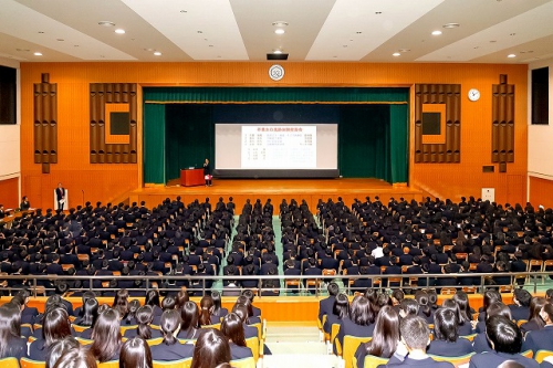 会の最後に、目先の目標だけでなく、2年生の就職希望者は約180日後、大学進学希望者は約220日後にある遠くの目標に対する準備も日ごろからバランスを取って高校生生活を送ってもらいたい、との言葉で閉会しました。