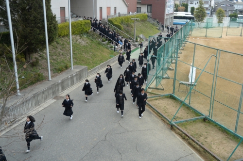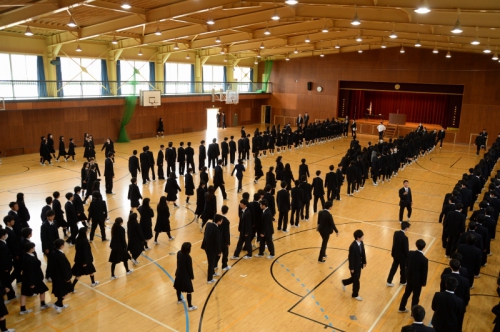12日(月)、全校生参加しての避難訓練が実施されました。安全確保・避難経路の確認・迅速で正確な点呼を実施目的に、午前9時7分に校内放送で避難訓練を実施し体育館に集合しました。校長先生から「去年と比べて生徒が160名増えましたが、8分55秒で全員が体育館に入り、10分35秒で点呼が完了し、約10分で避難が完了しました。今年は話し声がほとんど聞こえず、本当に驚きました。素晴らしい避難だったと思います。実際に災害が起こった場合も慌てず冷静に避難してください」と話されました。