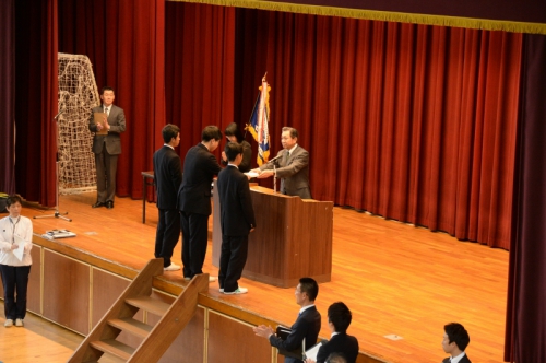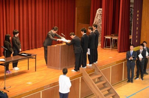 副校長より表彰伝達が行われ、大きな拍手が体育館に響きました。