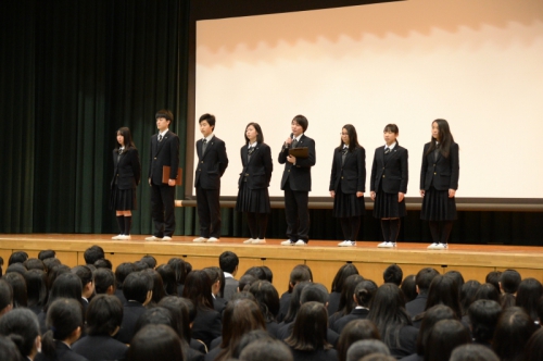 学級委員に選ばれた人は本校生徒としての誇りと、学級委員としての自覚をもって行動し、選んだ人は学級委員に協力し、支えていくことで学校は活発になっていきます。どんな組織でも必ずリーダーが必要です。リーダーの役割になった人はリーダーシップを発揮し、学級をまとめていってください。