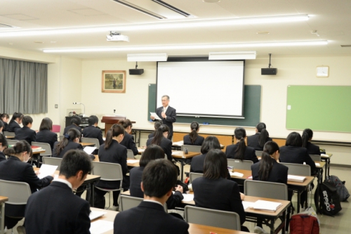 講座内では進路指導担当教諭から「これから色々な先生方が君たちのために話をしてくれると思いますが、すべて9月16日からの就職試験のためになります。しっかりとメモをして振り返れるようにしておきましょう」「まず自分自身について知り、自分はどういう人間で、どういったものが好きで何に興味があるのか、見つめ直すことが大切です」などといった話がありました。
