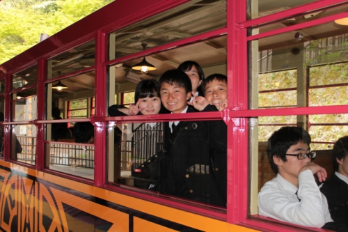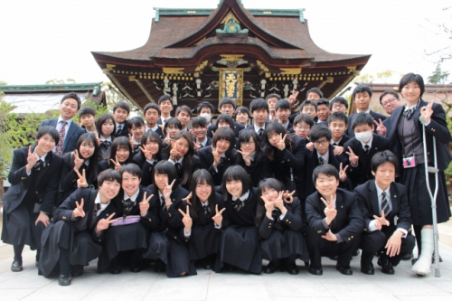 3年生は9時30分に湊川神社に集合し、クラスごとにバスに分乗して出発、京都へ向かいました。