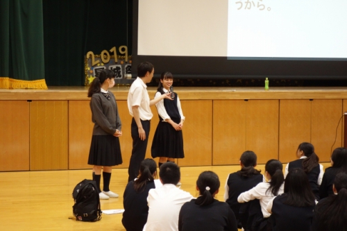 就職希望者は「面接で緊張しないで説得力のある話し方」とのテーマで講座を受講しました。その一部を紹介しますので、1・2年生も自分の進路の参考にしてください。