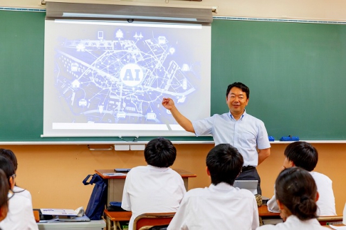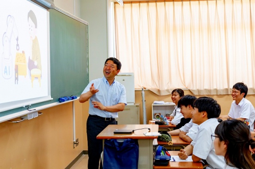 授業内容は、「16歳からの起業塾」というテーマで、「AIは今どうなっているのか?」「今後の社会はどうなるのか?」などを具体的な事例を挙げて伝えながら、過去の偉人の話を題材に「起業家マインドとは何か」という話に繋がるお話で、起業家マインドというのは特別な人が身につけるものではなく、ものごとをどう捉えるかという意識の問題であることが分かりました。