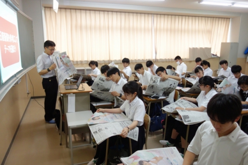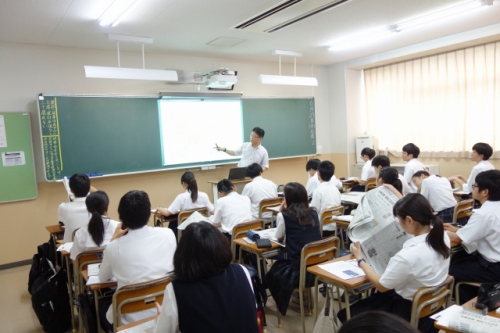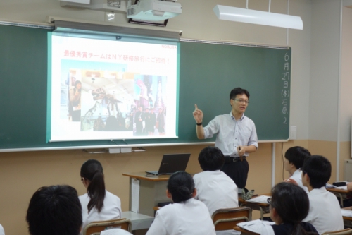 6月27日(木)5・6校時、野村ホールディングス株式会社から講師の方をお招きし、1年生特進Sコースのビジネス基礎の授業の一貫として、株式学習コンテスト「日経STOCKリーグ」についての講演をしていただきました。