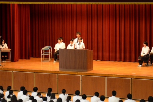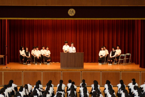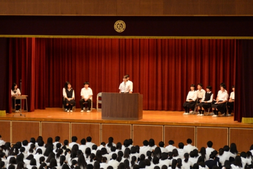 2年生5名、1年生6名の生徒会役員立候補者とそれぞれの応援弁士が全校生徒に熱いメッセージを送り、立候補者の意欲を示しました。演説内容は「意見箱の意見を積極的に取り入れる」「星城高校をより明るい未来へ導く」「学校行事をさらに充実したものに」「誰もがチャレンジでき誰もがサポートできる学校へ」などで、2年生は具体的な取り組みを含めた心のこもった演説、1年生は謙虚で元気のある力強い演説で、その「星城愛」に頼もしさを感じました。また立候補者だけでなく、演説会の企画・進行・司会を担当した3年生の現生徒会役員の姿も責任と自覚に溢れていました。