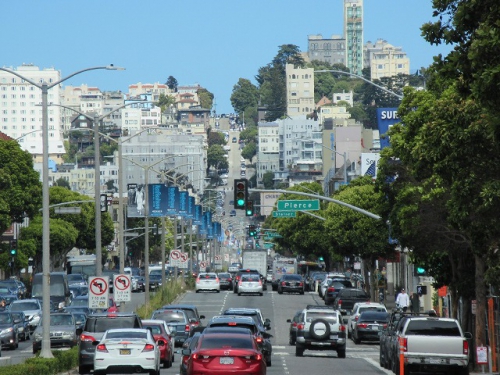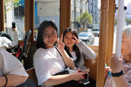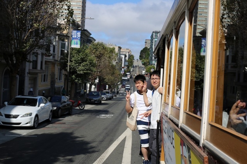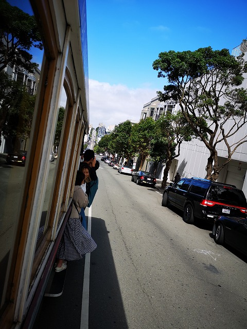 まず最初に向かったのは、名物のケーブルカーです。サンフランシスコのさわやな風に吹かれながら町の景色と運転手さんのリズミカルな鐘の音を楽しみました。