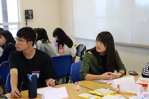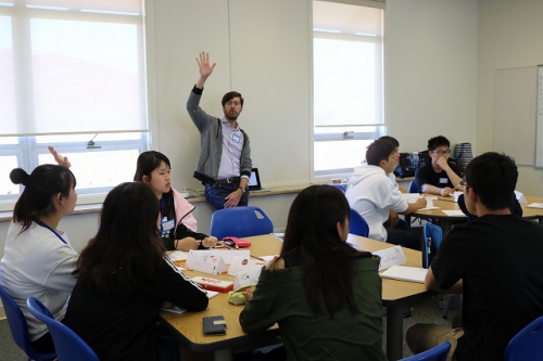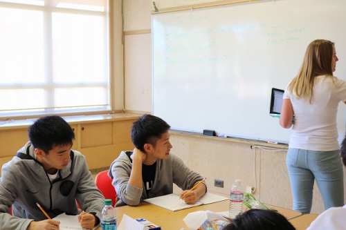 今日から語学研修が始まりました。3クラスに分かれての授業で、生徒たちは精一杯自分の英語で伝えようとしていました。