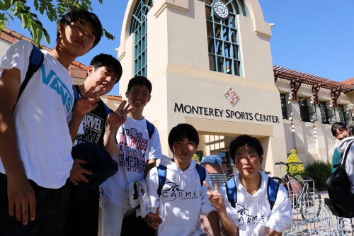 語学研修3日目、午前の語学研修を終え、午後からはモントレイスポーツセンターで活動しました。体育館ではバスケットボール、卓球、バドミントン、バレーボール、プールやマシーンを使ったトレーニングなど、各々でスポーツアクティビティーに励みました。アメリカに来てあまり体を動かしていなかった生徒も多く、生徒たちはリフレッシュした様子でした。