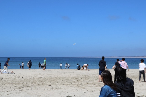 今日は午前に語学研修、午後はビーチパーティを行いました。語学研修では生徒たちも随分と慣れた様子で、堂々と英語で発表する姿が見受けられ成長を感じました。心配していた天候も午後からは快晴で、過ごしやすい気温の中ビーチパーティを楽しみました。ファミリーや友人達と一緒にサッカー、バレーボール、ベースボール、フリスビーなど思いっきり体を動かすことで、さらに親睦が深まったことを感じます。