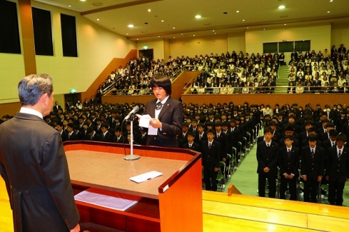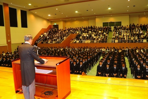 本校入学を期に夢と希望を持ち、様々なことにチャレンジし自分の潜在能力を大きく伸ばしてください。本校の生徒になったからには、一日も早く本校の校風になじみ、本校生徒としての自覚と誇りを持って、勉強にクラブ活動に励んでください。