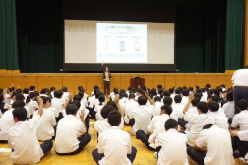 「進路選択はいつから始めるか」「未来の夢の見つけ方」「企業が高卒採用に求めている力とは」「高校1年生の今、一番やっておきたいことは」など、ご自身の経験談を踏まえ、キャリア教育的アプローチで話を展開されました。