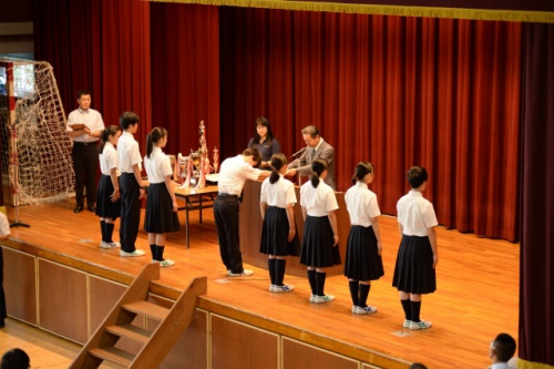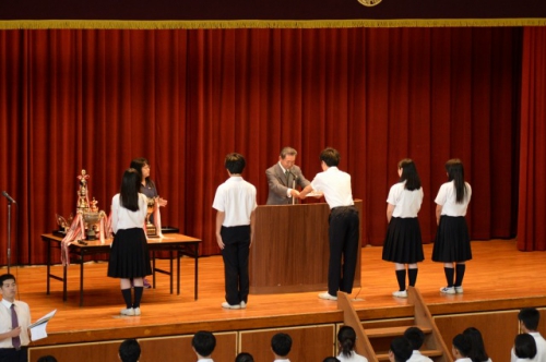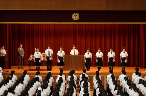 生徒会役員と学級委員を任命しましたが、選ばれた人と選んだ人、この両者が協力し合うことで、活力ある生徒会活動ができ楽しいクラスができ学校生活が充実するのです。積極的に協力することで、充実した学校生活が創りだされます。新生徒会役員の皆さんも、全校生徒と力を合わせて、社会から一層高く評価される学校になるようベストを尽くしてくれることを期待しています。