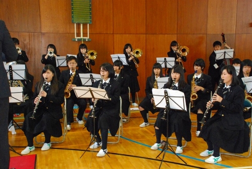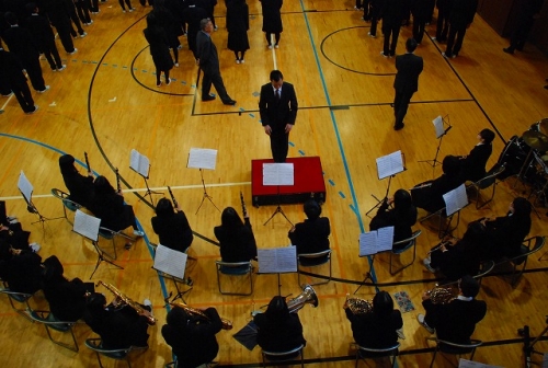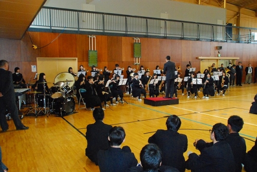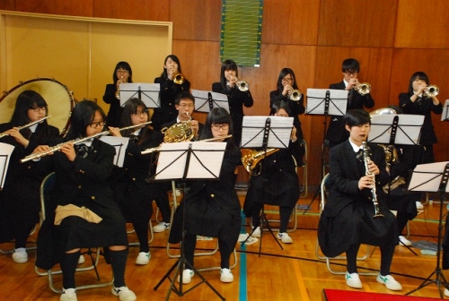 音楽部による歓迎演奏の「ルパン3世のテーマ」で、体育館は温かくなりました。こうして、平成29年度1学期始業式・対面式は終了しました。