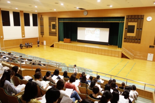 進学説明会では最初に株式会社アプリスの担当者から、本校で全校生徒対象で12月23日・24日2日間実施予定の「国内プチ留学」についての説明をしていただきました。その中で「今後大阪万博や東京オリンピックが開催される予定で、また海外からの旅行客も年々増えており英語力が必要となってくる」と、これからの時代において、いかに英語力を身につけることが重要かといったお話がありました。(申込み締切:10月25日(金)英語科 内田教諭まで)