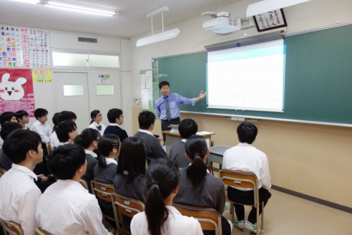 19日(土)、特進Sコースの1年生は情報処理授業の一環で、「IT・エレクトロニクス講座」を行いました。JEITA 電子情報技術産業協会より講師の方にお越しいただき、「コンピュータの進化と人工知能」をテーマにお話をいただきました。