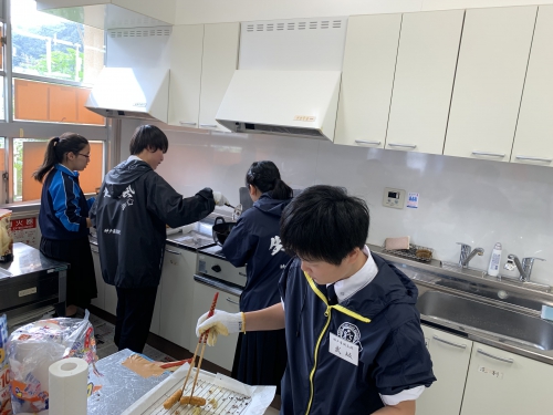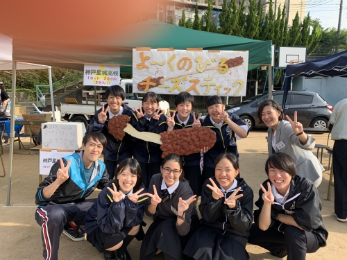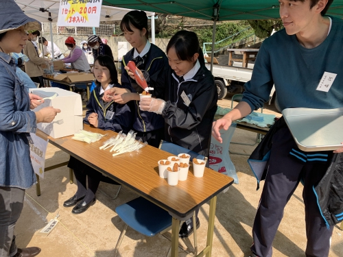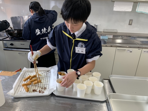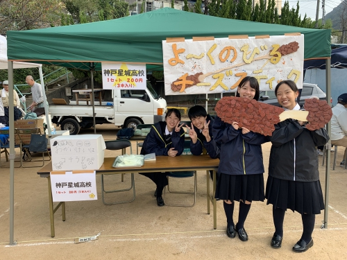 生徒会の生徒が「第27回 ふれ愛ひろば」という地域のイベントに参加しました。今年は「チーズスティック」を出店しました。大好評でお昼過ぎには完売!一生懸命おまつりを盛り上げながら地域の方々と協力してイベントを成功させました。
