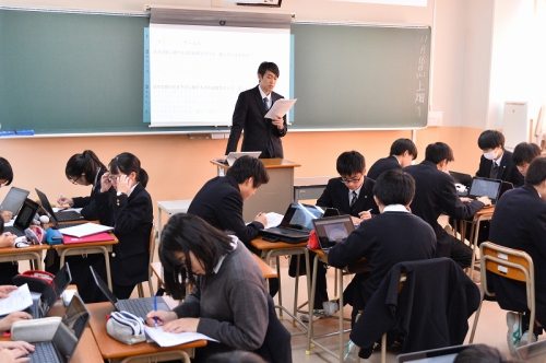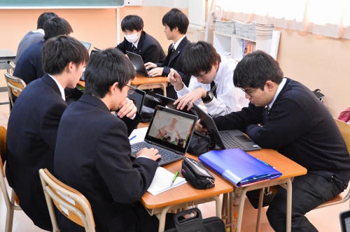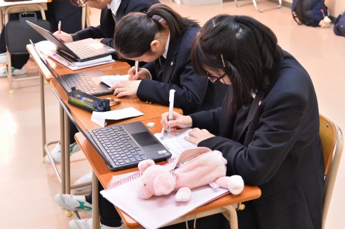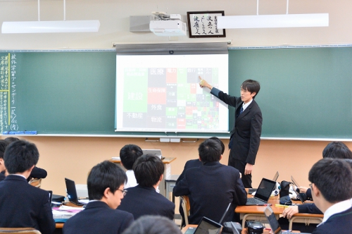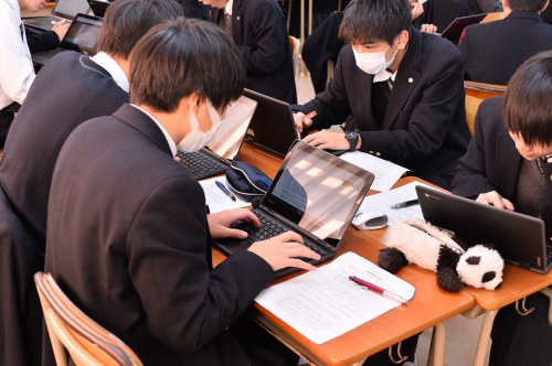 特進Sコースの生徒は来年1月の提出に向けて今後各グループで活動を進め、レポートを作成します。今日の授業でも言われたように、グループ内で役割分担をして協力しながら取り組み、入賞を目指して頑張ってもらいたいと思います。
