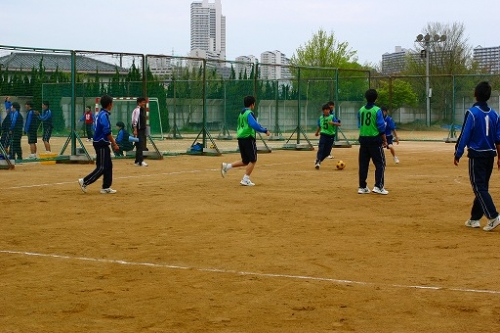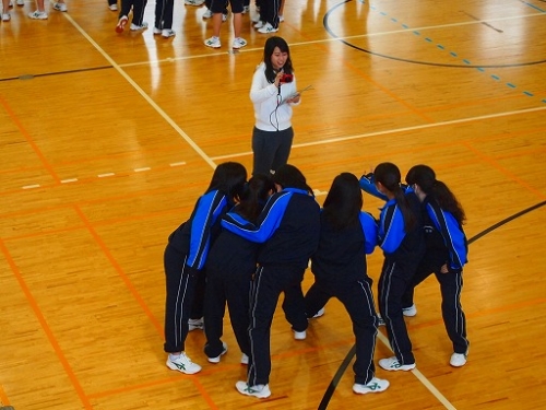 全体での準備体操が終わってから、すぐに男子はグループごとでの自主練習、女子は結束を固める円陣が組まれ気合の入った大きな掛け声が各クラスから聞かれるなど、対戦前から大盛り上がりです。