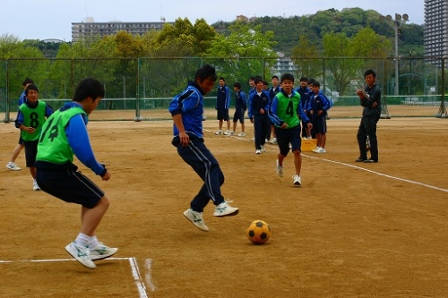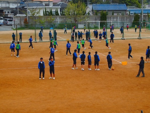 4月21日(金)、2年生は校内で球技大会を行いました。今朝はあいにくの空模様でグラウンド状況が心配されましたが、生徒たちのやる気とパワーによって天候が回復し、実施されることになりました。体育館で岡田学年主任・グランドでは太田学年副主任から、「ケガをせず、生徒自らが主体的に動く球技大会にしよう」とのお話がありました。