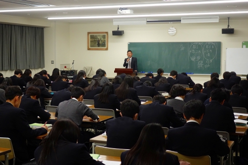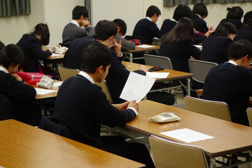 12月9日から27日まで、受験を控えた3年生を対象にセンター試験対策講習を実施しており、今日は英語・数学の講習を行いました。受講する91名の生徒は、この講習を最大限に活かし、今までの学習を振り返りながら自分の弱点を克服するべく、真剣な面持ちで取り組んでいる様子でした。