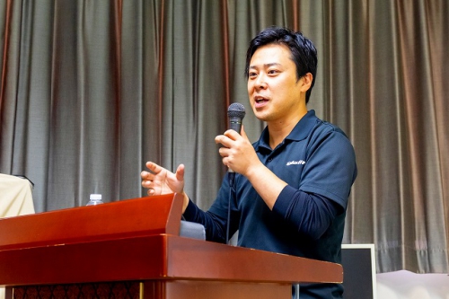 続いて自動車を販売する会社を立ち上げてからのお話は、「海外に向けて英語でサイトを作ると反響が大きく、好調に売れていたが、リーマンショックで円高になり輸出が困難になった」「輸出がだめなら輸入だと思い、中国に行くとあらゆるものの物価が安い事を知り、中国から輸入、日本で販売してV字回復した」「ある本をきっかけに知った大久保秀氏から『ビジネスモデルをどんどん変化させていくことが大事である』という事を学んだ」「『乗り物を通じて世界中の人々に驚きと感動と笑顔を届ける存在でありたい』を実現させるために自分たち自身が、これから乗り物そのものを提供するメーカーを目指すこととなった」と、会社を経営していく中で立ちふさがる壁や、それをどうやって乗り越えてきたかなど、実際に経験されたからこそ伝わるリアルな内容でした。