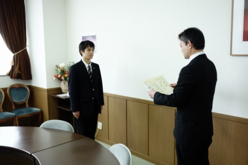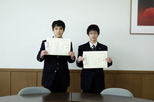 12月20日(金)、「税に関する高校生の作文」に応募した1年生から2名が優秀作品として選ばれ、本校小会議室で表彰式が行われました。表彰名、表彰者名等は下記の通りです。
