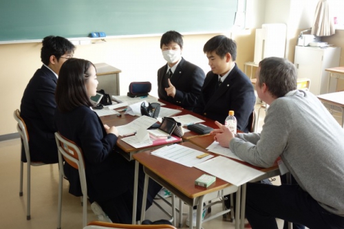 12月23日・24日の2日間、本校にて「国内プチ留学」を行いました。このプログラムは株式会社アプリスの協力のもと、外国人講師と共に2日間過ごすことで英語漬けの体験をし、他国の文化を学びながら、英会話スキルや社会で役立つコミュニケーション能力を身に着けることを目的としています。合計で31名の1・2年生が参加し、7グループに分かれて取り組みました。