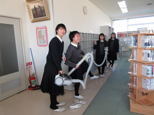 御用納めの本日の午後、毎年恒例行事となっているライブラリーの大掃除を行いました。センター試験対策講習が午前で終了し、昼食を終えた生徒たちが参加しました。小論文添削に面接指導と、指導してくださっている進学担当の先生方も参加しての清掃活動です。窓ふきに下足箱にすす払いと感謝の気持ちを持って取り組み、最後に集合写真を撮って解散となりました。