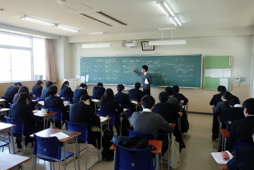3年生の大学合格者を対象に、数学ⅡBの分野を中心とした「大学入学者サポート数学講習」を実施しています。本校では主に経済学部系に進学する生徒が多く、経済学部系では微分積分などの数学ⅡBの内容が大学で必要とされることが多いため、大学入学に向けて学力を充実させることを目的に行っております。